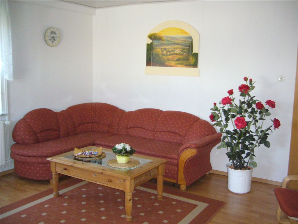 Wohnzimmer mit Schlafcouch, Sat-TV,DVD-Recorder, Wickelkommode.